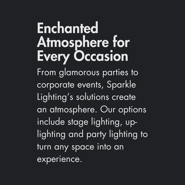 Sparkle Lighting is passionate about helping you achieve your dream lighting for any event project. Let's discuss your ideas and create a plan that meets both your practical needs and style preferences.
