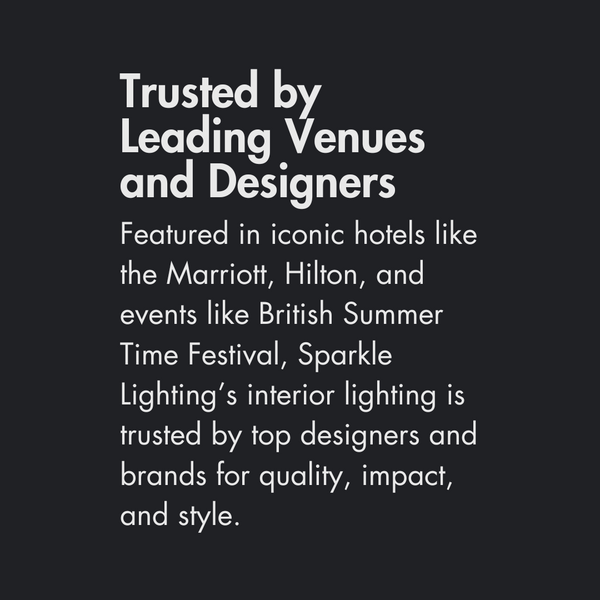 Sparkle Lighting is passionate about helping you achieve your dream lighting for any project, whether it's a hotel, event, or interior space. Let's discuss your ideas and create a plan that meets both your practical needs and style preferences.