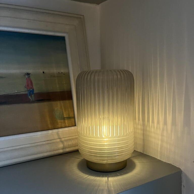 Cordless Glass Ribbed Battery Lamp
