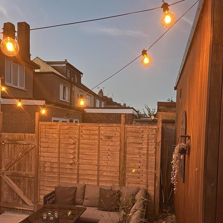 Globe Connectable Festoon lights are decorative strings of large globe light bulbs and are used to enhance an outdoor space. They are connectable festoon lights so you can add on extra lights to create the perfect length for your space.